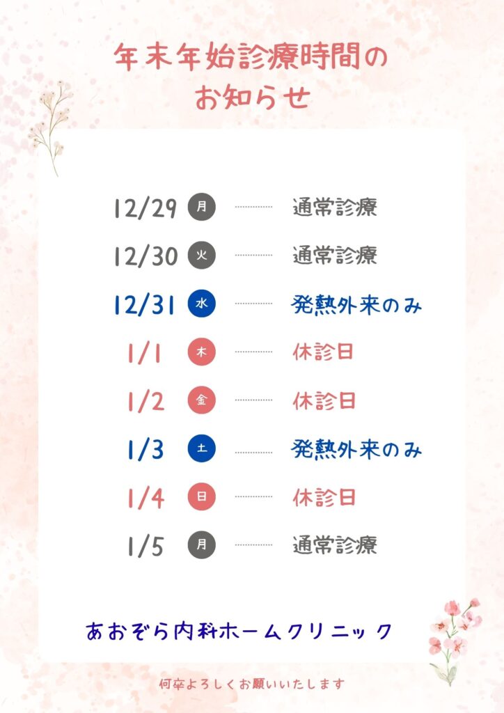 平素より、あおぞら内科ホームクリニックをご利用いただき、誠にありがとうございます。